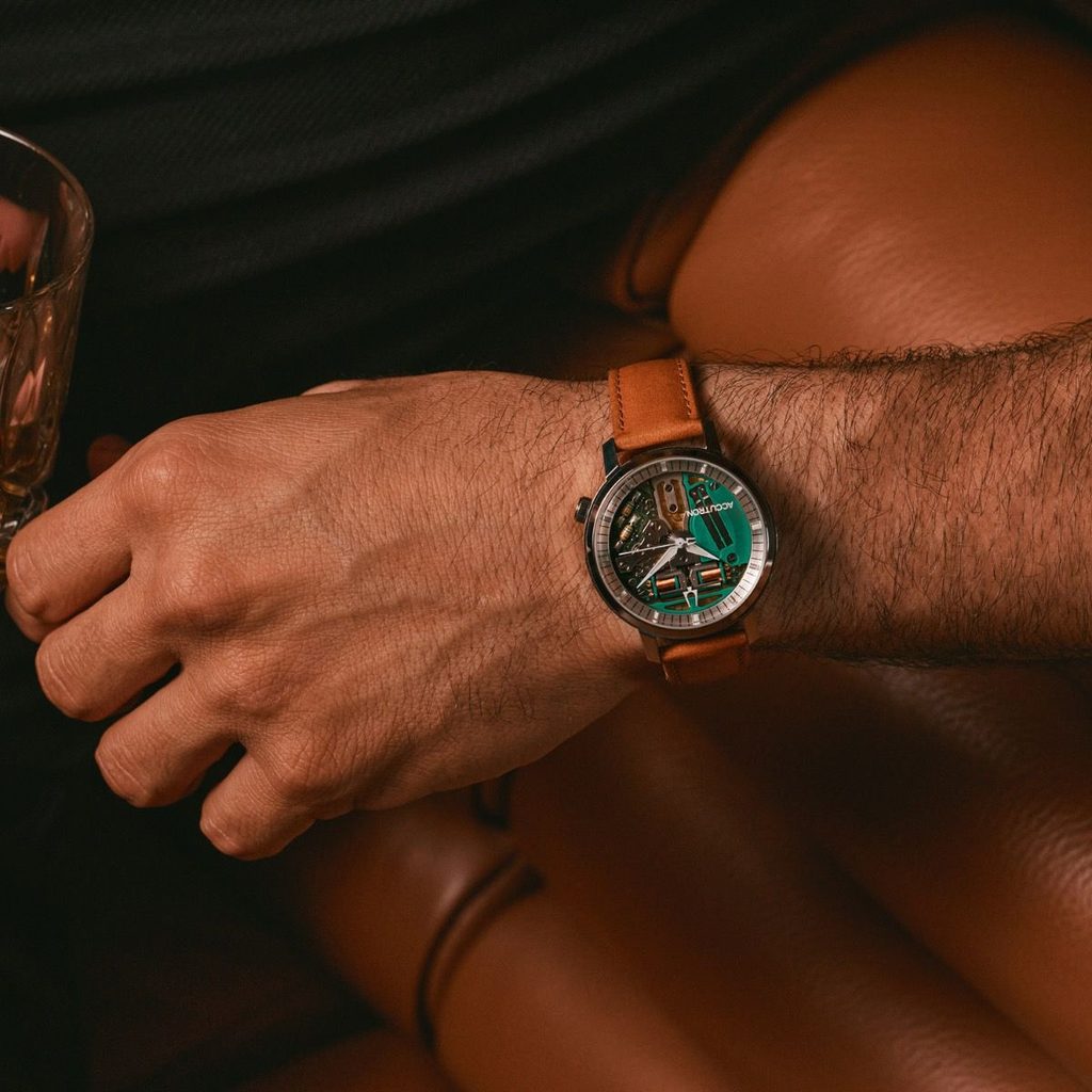 Tak ako v minulosti, aj Accutron Spaceview 314 odhaľuje strojček namiesto použitia klasického ciferníka, čím zdôrazňuje technológiu, ktorá je nielen zaujímavá na pohľad, ale skutočne krásna. Pohľad na ciferník je tak pohľadom na mostíky, prevody, rezistory, cievky a ladičku strojčeka. Nie náhodou sa ladička stala symbolom značky a oslavou hodinárskych inovácií.