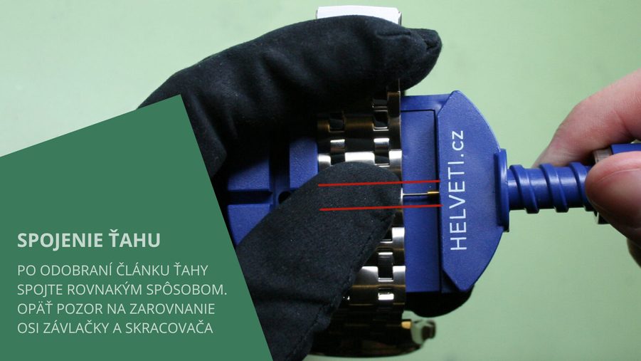 Najväčší problém, ktorý sa môže vyskytnúť, je to, že po vysunutí na maximálny rozsah nástroja na skrátenie závlačka ďalej drží pevne vo vnútri článku. V takom prípade si môžete pomôcť napríklad slabou ihlou, ktorú skúsite závlačku vytlačiť ďalej, alebo ju môžete skúsiť naopak vytiahnuť – väčšinou stačí rukou.