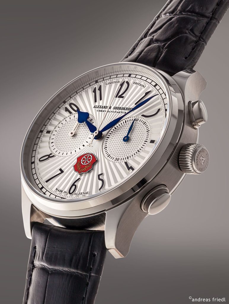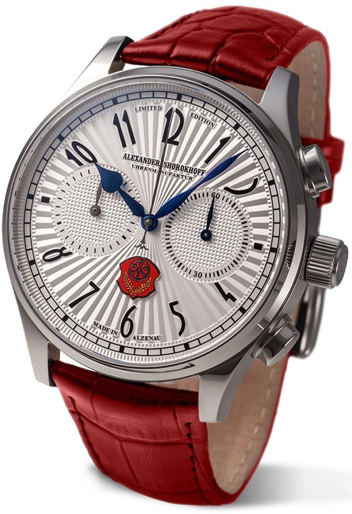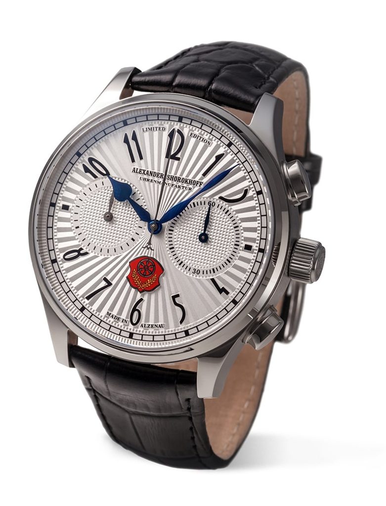 Špeciálna edícia hodiniek Alexander Shorokhoff Alzenau je k dispozícii v dvoch verziách: so strieborným alebo šampanským ciferníkom a gilošovanou povrchovou úpravou. Obe verzie sú prísne limitované na 100 kusov. Pre lepšiu čitateľnosť boli zvolené veľké čierne arabské číslice a minútová stupnica v čiernej farbe. Mestský znak je vyrobený zložitým procesom ako samostatný farebný prvok. Neprehliadnuteľný je aj nápis pod logom: Made in Alzenau. Tým sa opäť zdôrazňuje skutočnosť, že výroba patrí do regiónu Alzenau.