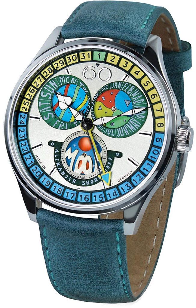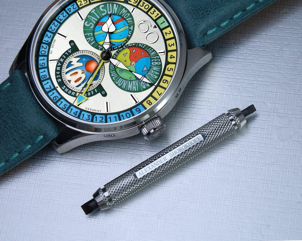 Celý ciferník nezameniteľne prezentuje avantgardný podpis dizajnéra Alexandra Šorochova. Každý detail, farba a tvar sú dokonale zladené. To dokáže len Alexander Shorokhov.