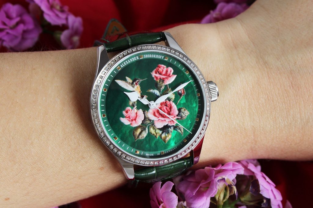 Motív je čistá poézia: kolibrík, ktorý sa zdanlivo zrodil z piesne lásky, tancuje medzi sviežimi ružami a s pôvabnou eleganciou ohlasuje príchod leta. Tieto hodinky evokujú túžbu zažiť leto v celej jeho kráse.