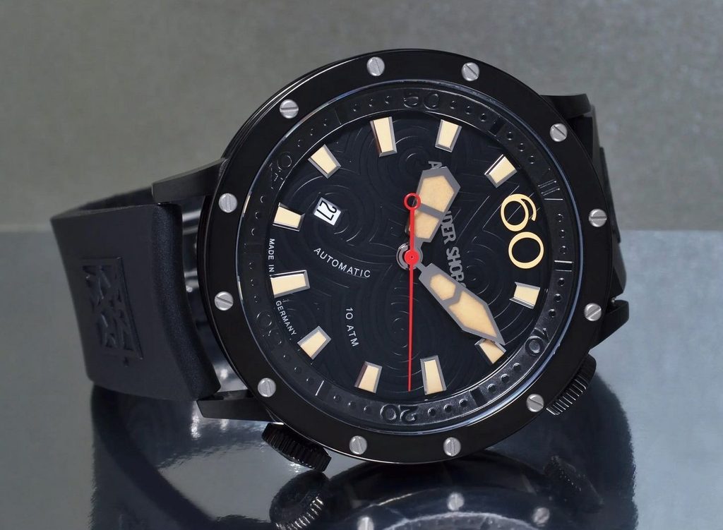 Pánske hodinky Alexander Shorokhoff Deep Ding 2 AS.DD05-B patria do modelového radu Avantgarde. Alexander Shorokhoff predstavuje nástupcu modelu Deep Ding 1, prvých hodiniek Alexander Shorokhoff s vodotesnosťou 10 ATM. Zvláštnosťou tohto nového variantu Deep Ding 2 je jeho všestrannosť, a tým aj značná pridaná hodnota. Teraz v celočiernom vyhotovení.