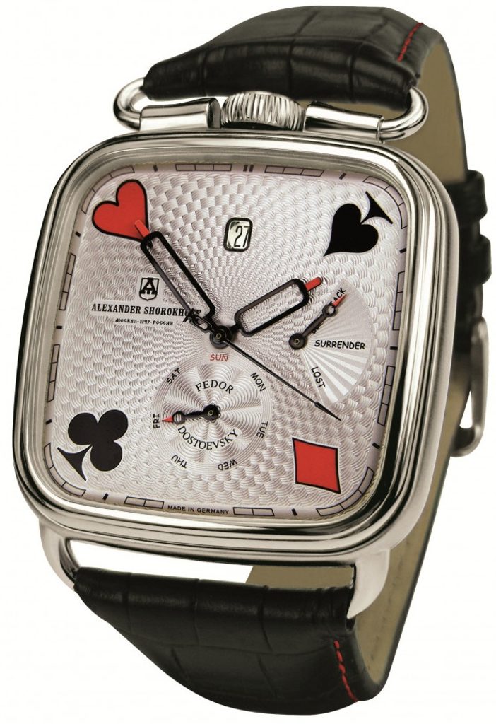 Dostojevskij bol nielen veľký spisovateľ, ale aj vášnivý hráč. S rovnakou vášňou, s akou písal romány, sa vrhol na hazardné hry. V nemeckom Baden-Badene prehral celý svoj majetok. Táto hráčska vášeň tohto spisovateľa motivovala A. Šorochova k vytvoreniu jedinečného dizajnu hodín Fedora Dostojevského.