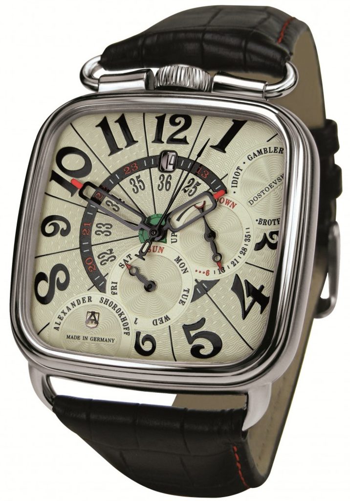 Dostojevskij bol nielen veľký spisovateľ, ale aj vášnivý hráč. S rovnakou vášňou, s akou písal romány, sa vrhol na hazardné hry. V nemeckom Baden-Badene prehral celý svoj majetok. Táto hráčska vášeň tohto spisovateľa motivovala A. Šorochova k vytvoreniu jedinečného dizajnu hodín Fedora Dostojevského.
