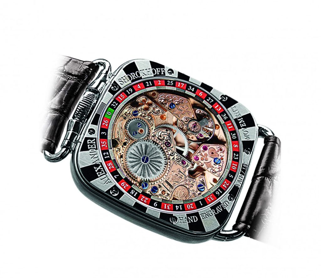 Béžový gilošovaný ciferník je chránený zafírovým sklíčkom. Je na ňom vyobrazený hráč rulety. Ukazovateľ dátumu je diskrétne ukrytý na pozícii 10. Osobitná pozornosť je venovaná zadnej strane hodiniek. Dômyselne vyryté symboly kartovej hry, ako aj rulety, dokonale ladia s témou a harmonicky dotvárajú celkový vzhľad modelu.
