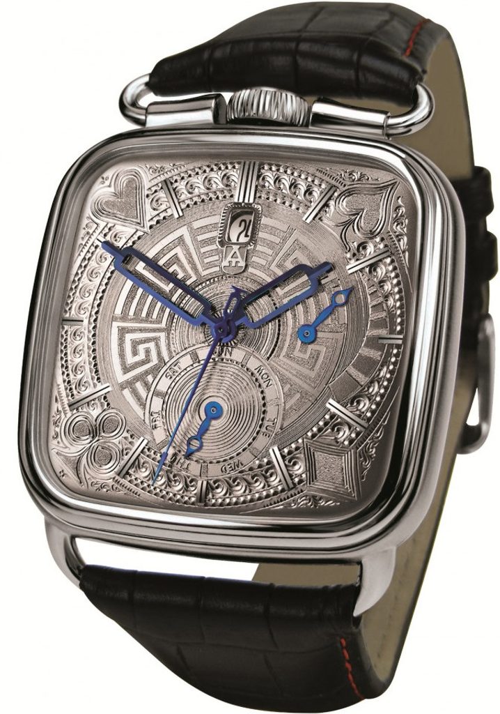 3D ciferník je ručne gravírovaný. V jeho rohoch môžeme vidieť vyobrazené symboly kariet: kára, piky, kríže a srdcia. Tretiu pozíciu diskrétne zaberá ukazovateľ rezervy energie, zatiaľ čo ukazovateľ dňa v týždni je na pozícii 6. Na pozícii 12 je praktický ukazovateľ dátumu a všetko chráni zafírové sklíčko s antireflexnou úpravou.