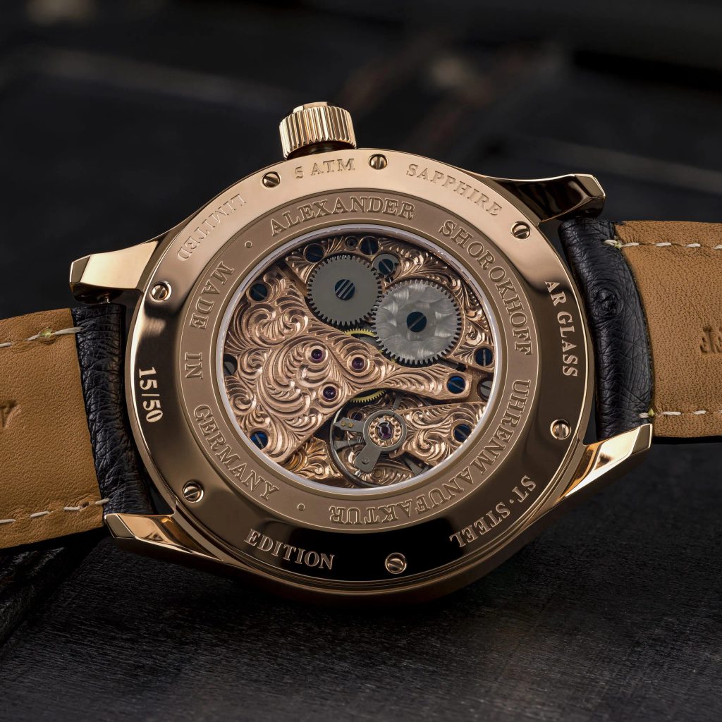 Alexander Shorokhov je typom človeka, ktorý je všade tunajší. Cestuje po svete a čerpá inšpiráciu z mnohých krajín a kultúr, ktoré navštevuje. Najviac ale čerpá zo svojich koreňov, ktoré vychádzajú z bohatej a tisícročnej umeleckej a kultúrnej histórie. Tieto aspekty v kombinácii s nemeckou presnosťou vedú k neobvyklému individuálnemu designu hodiniek, spojeným s veľkým nasadením, vynikajúcou kvalitou a najvyššou možnou presnosťou.