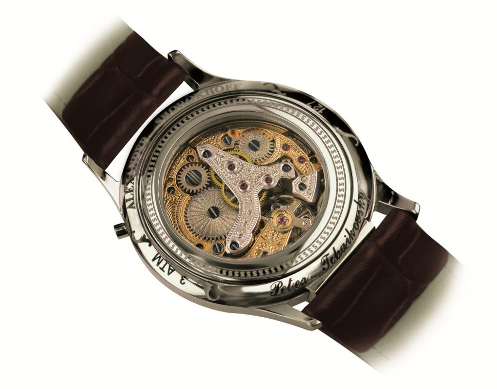 Skvelú prácu pri zdokonaľovaní hodiniek odviedli aj majstri hodinári a rytci v spoločnosti Alexander Shorokhoff. Hodinky boli nápadito vyryté a hodnotne zušľachtené vysokokvalifikovanými rytcami. Tradičné kvetinové motívy gravírovaného mostíka, ako aj gilošované ozubené kolieska vytvárajú nostalgický pocit a túžbu po starých dobrých časoch. Po gravírovaní a leštení sú všetky mostíky pozlátené alebo ródiované a skrutky sú modré, čo im dodáva mimoriadne atraktívny vzhľad. Kúsok po kúsku tak vzniká úžasné umelecké dielo.