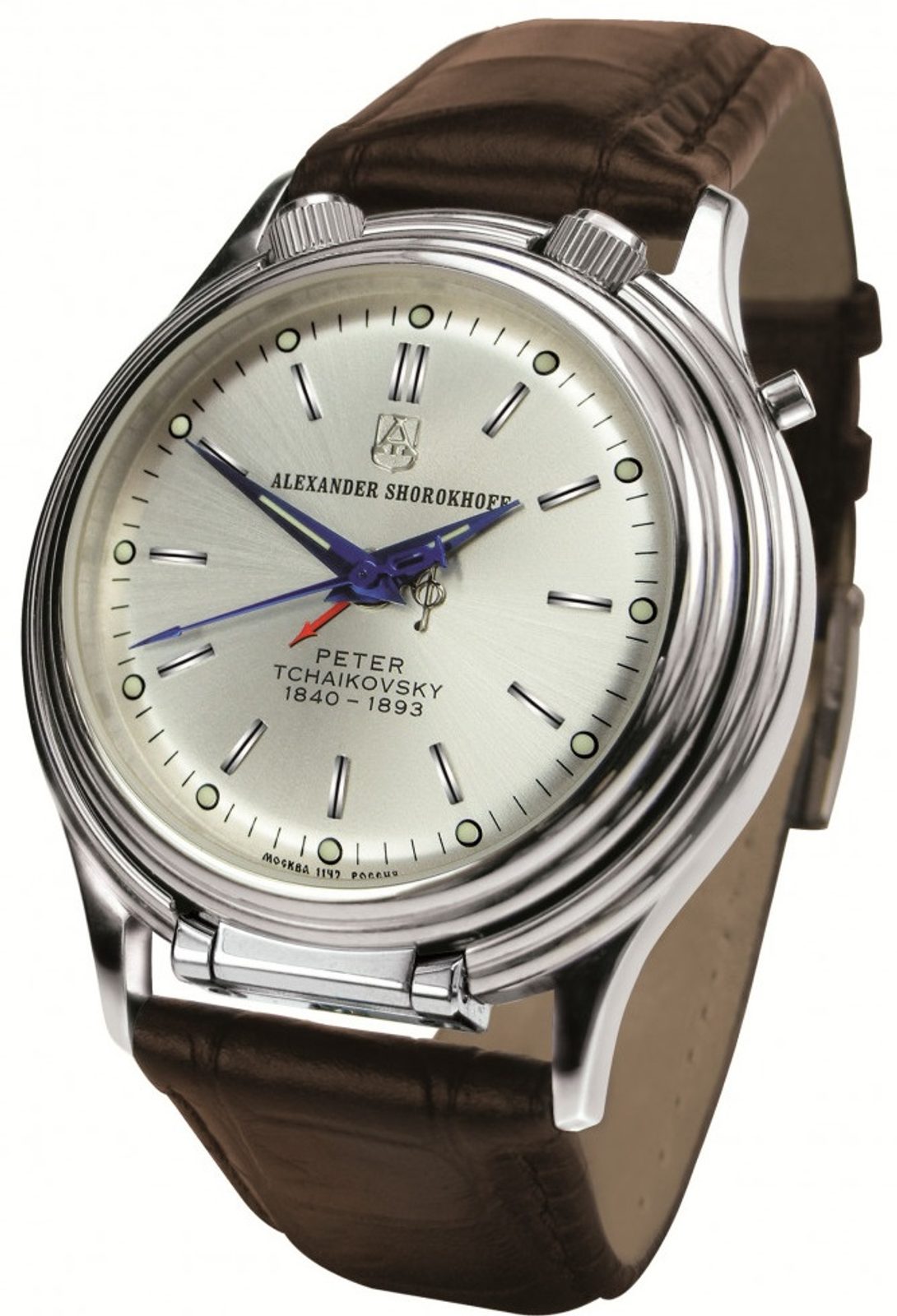 Elegantné pánske hodinky Alexander Shorokhoff Peter Tchaikovsky AS.PT1 patriado modelového radu Heritage. Peter Iljič Čajkovskij bol majstrom elegancie, čo sa prejavilo nielen v jeho vzhľade, ale predovšetkým v jeho hudbe, ktorá je krásna, nenapodobiteľná a predovšetkým nesmrteľná. To isté možno povedať aj o hodinkách, ktoré navrhol Alexander Šorochov.