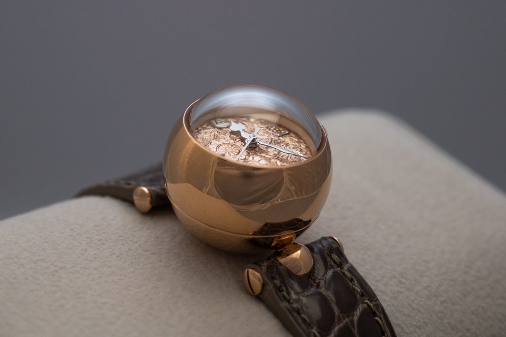 Puzdro a zafírové sklíčko na prednej strane sú spojené do tvaru gule. Na spojenie spodnej časti a tela puzdra bez ďalších hrán a otvorov bola vyvinutá konštrukcia s jednou skrutkou. Skrutka sa nachádza v strede dna a spája obe časti. Má tiež polguľovitý tvar, ktorý zodpovedá celkovému tvaru. Zafírové sklíčko je dokonale prispôsobené guľovitému tvaru a takmer bez problémov zapadá do puzdra.
