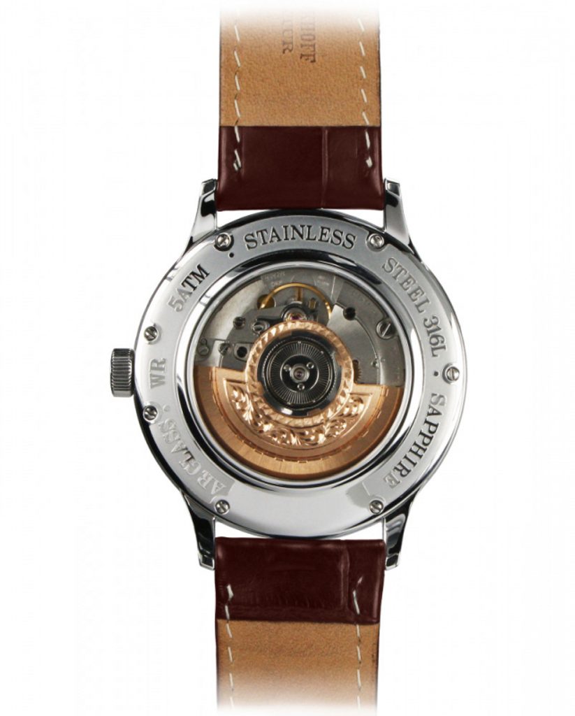 Puzdro hodiniek Sixtythree AS.LA02-4 je vyrobené z ušľachtilej ocele. Vo vnútri sa nachádza mechanický strojček s automatickým naťahovaním 2892.AS. Strojček je ručne opracovaný, gravírovaný a vďaka priehľadnému zafírovému sklíčku krásne viditeľný. Je osadený 21 drahokamami a má rezervu chodu 47 hodín. Na pozícii 6 sa nachádza praktická dátumovka. Všetko chráni zafírové sklíčko s antireflexnou úpravou.