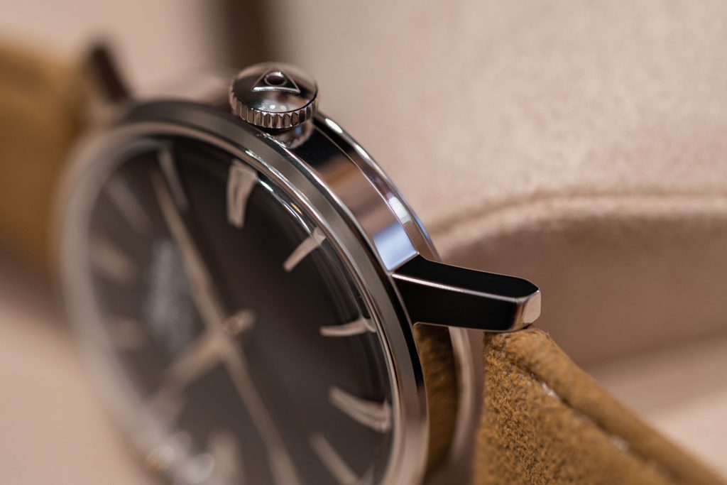 Čierny ciferník je chránený zafírovým sklíčkom s antireflexnou vrstvou pre maximálnu odolnosť proti poškriabaniu. Vodotesnosť tohto modelu je 30 m, takže zvládne len základný kontakt s vodou, napríklad umývanie rúk.
