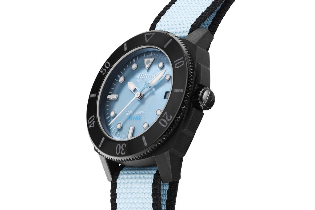 Hodinky Alpina Seastrong Diver Gyre Ladies Limited Edition AL-525LMPLNB3VG6 potešia najmä nadšencov potápačských hodiniek. Vďaka svojim vlastnostiam a dizajnu sú však použiteľné nielen na potápanie, ale aj na každodenné nosenie. Táto limitovaná edícia 1883 kusov má puzdro vyrobené z rybárskych sietí z Indického oceánu.
