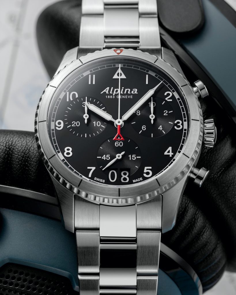 Hodinky Alpina Startimer Pilot Quartz Chronograph Big Date AL-372BW4S26B sú krásnym kúskom nielen pre milovníkov leteckých hodiniek. Vďaka svojim vlastnostiam a dizajnu je vhodný nielen na zápästie pilotov, ale aj na každodenné nosenie. Tento dizajn vychádza z pôvodného modelu zo začiatku minulého storočia a pripomína pôvodný vzhľad prvých vojenských pilotných hodiniek Alpina.