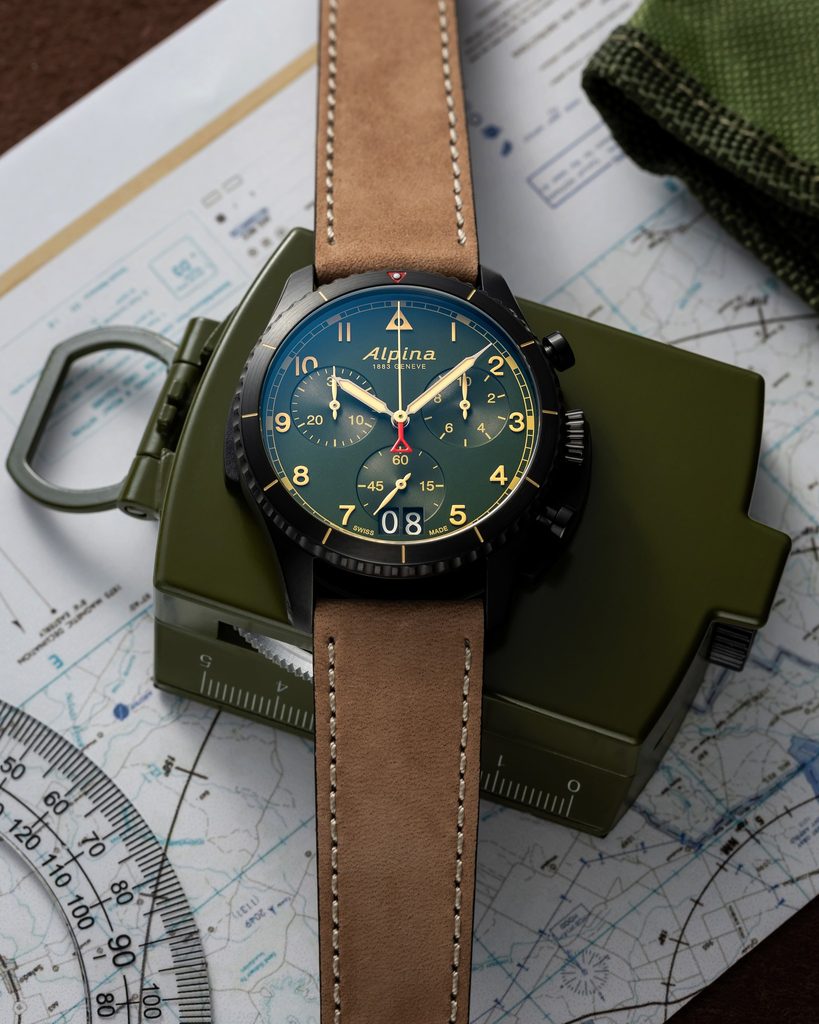 Alpina Startimer Pilot Quartz Chronograph Big Date AL-372NW4S26 je nádherný kúsok nielen pre nadšencov leteckých hodiniek. Vďaka svojim vlastnostiam a dizajnu je vhodný nielen na zápästie pilotov, ale aj na každodenné nosenie. Tento dizajn vychádza z pôvodného modelu zo začiatku 20. storočia a pripomína pôvodný vzhľad prvých vojenských pilotných hodiniek Alpina.
