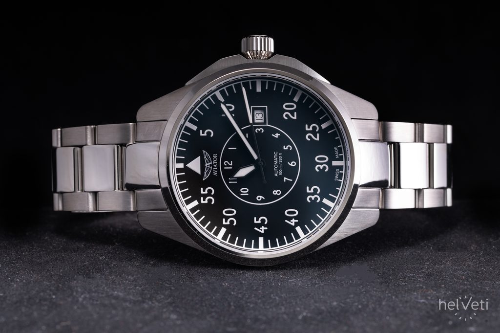 Ciferník, ktorý evokuje ducha pilotnej kabíny, je navrhnutý s matnou zrnitou textúrou, ktorá dodáva hodinkám viac prístrojový dojem. Jeho minimalistické, vysokokontrastné ručičky a číslice zaručujú vynikajúcu prehľadnosť a čitateľnosť, zatiaľ čo okienko kalendára na pozícii troch hodín umocňuje jeho jedinečný dizajn. Každý detail bol premyslený tak, aby sa v ňom snúbila autentickosť so vzhľadom inšpirovaným letectvom.