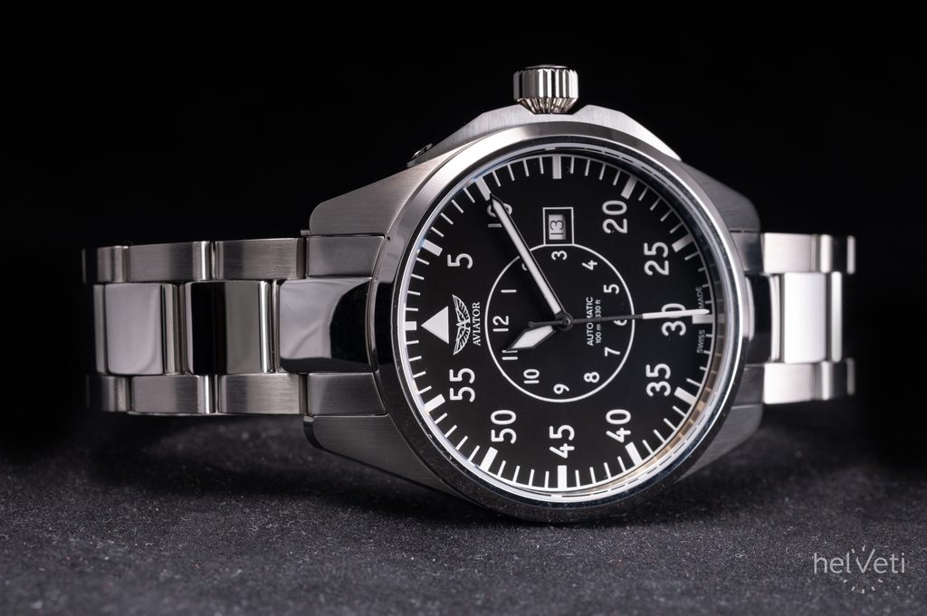 Hodinky Aviator Airacobra 43 Heritage Automatic V.3.39.0.340.5 s priemerom puzdra 42,8 mm sa hodia na väčšinu pánskych zápästí. Vďaka vodotesnosti 10 ATM sú tieto hodinky skvelým spoločníkom nielen vo vzduchu, ale aj pri plávaní vo vode.
