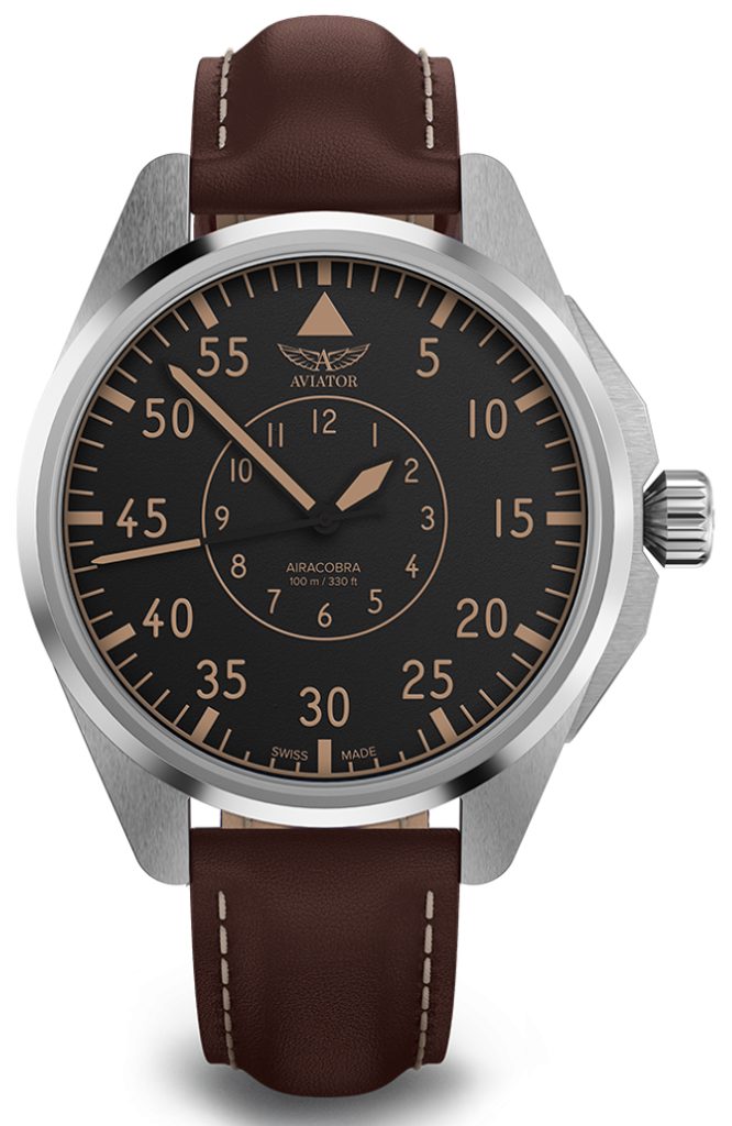 Úspech pechotných operácií počas druhej svetovej vojny umožnili lietadlá Airacobra, ktoré podporovali jednotky z oblohy. Tak ako bolo toto bojové lietadlo dôležité pre pilotov a misiu, hodinky Aviator Airacobra ponúkajú rovnakú spoľahlivosť s vintage vzhľadom inšpirovaným týmto úctyhodným vojnovým hrdinom. Hodinky Aviator Airacobra sú vyrobené z prvotriednych materiálov a spájajú vojenskú precíznosť s klasickým vzhľadom.
