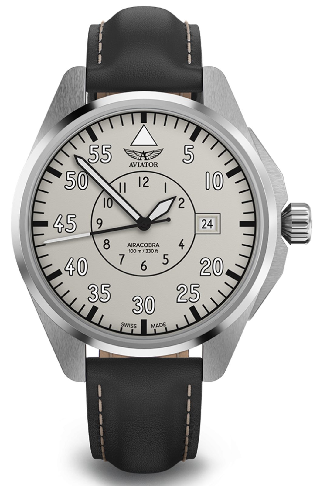 Úspech pechotných operácií počas druhej svetovej vojny umožnili lietadlá Airacobra, ktoré podporovali jednotky z oblohy. Tak ako bolo toto bojové lietadlo dôležité pre pilotov a misiu, hodinky Aviator Airacobra ponúkajú rovnakú spoľahlivosť s vintage vzhľadom inšpirovaným týmto úctyhodným vojnovým hrdinom. Hodinky Aviator Airacobra sú vyrobené z prvotriednych materiálov a spájajú vojenskú precíznosť s klasickým vzhľadom.