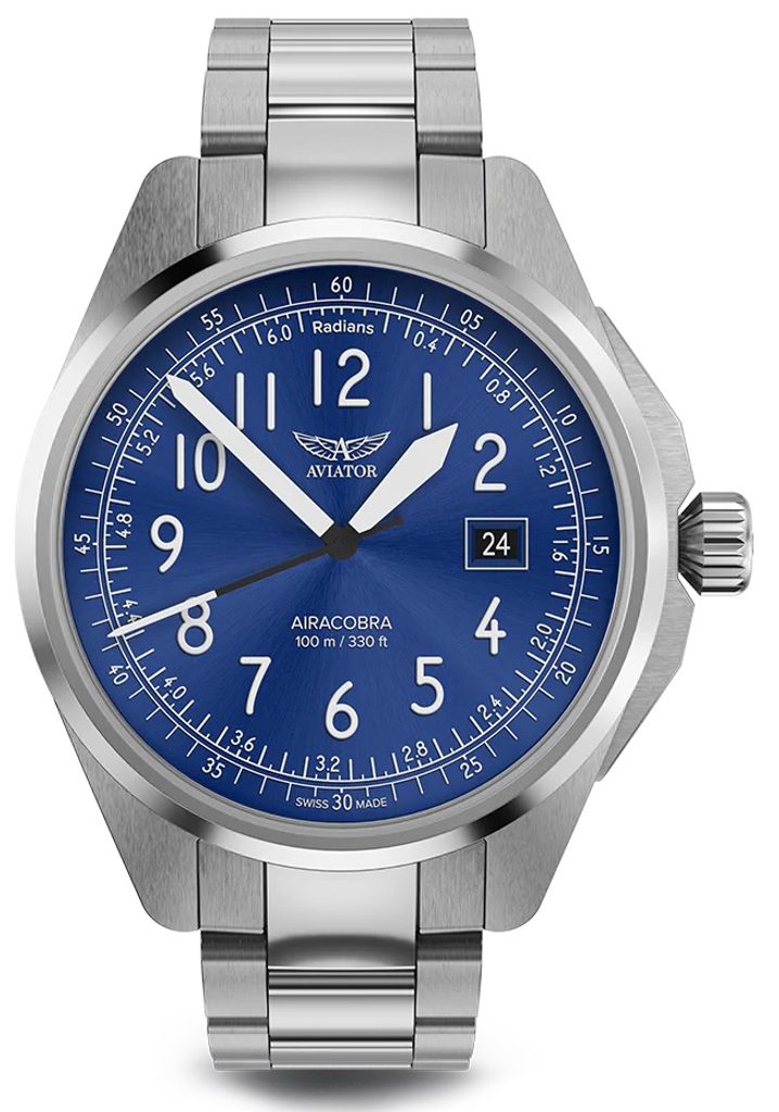 Úspech pechotných operácií počas druhej svetovej vojny umožnili lietadlá Airacobra, ktoré podporovali jednotky z oblohy. Tak ako bolo toto bojové lietadlo dôležité pre pilotov a misiu, hodinky Aviator Airacobra ponúkajú rovnakú spoľahlivosť s vintage vzhľadom inšpirovaným týmto úctyhodným vojnovým hrdinom. Hodinky Aviator Airacobra sú vyrobené z prvotriednych materiálov a spájajú vojenskú precíznosť s klasickým vzhľadom.
