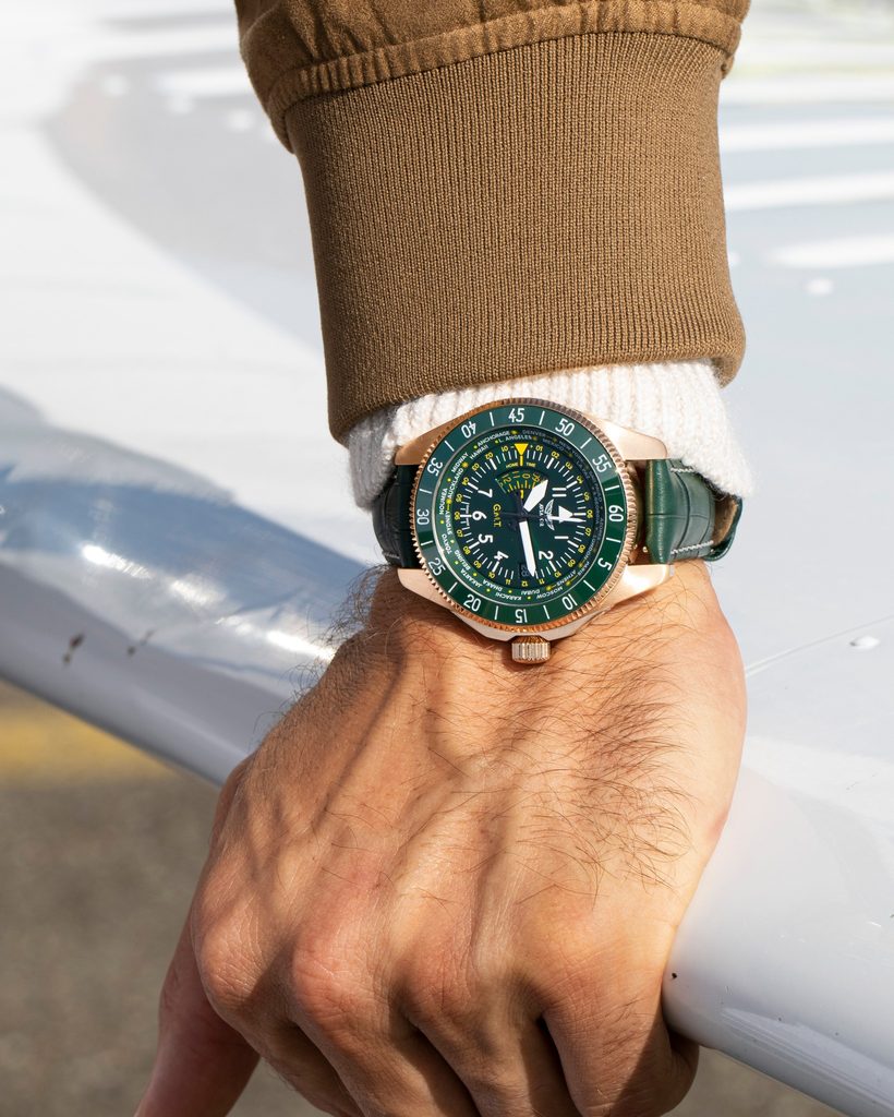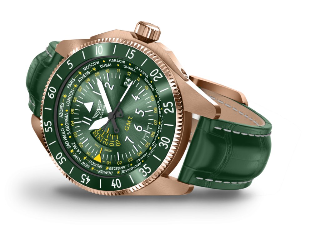 Hodinky Aviator Airacobra GMT, inšpirované touto inováciou, v sebe spájajú štýl a ergonómiu, pričom vo svojich lunetách odrážajú tvar lietadla a krídla a zároveň vzdávajú hold lietadlu Airacobra. Ciferník inšpirovaný prístrojmi lietadla zdôrazňuje viditeľnosť a čitateľnosť všetkých možných údajov.