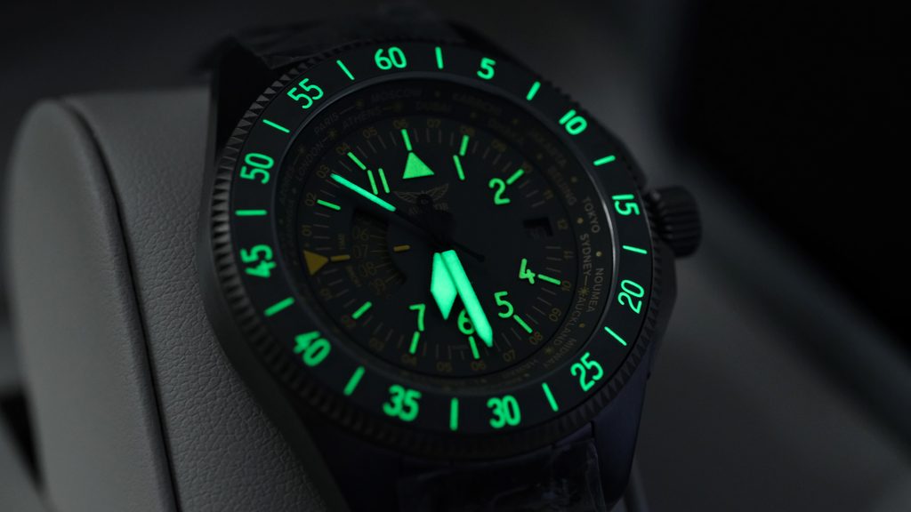 Hodinky Aviator Airacobra GMT, inšpirované touto inováciou, v sebe spájajú štýl a ergonómiu, pričom vo svojich lunetách odrážajú tvar lietadla a krídla a zároveň vzdávajú hold lietadlu Airacobra. Ciferník inšpirovaný prístrojmi lietadla zdôrazňuje viditeľnosť a čitateľnosť všetkých možných údajov.