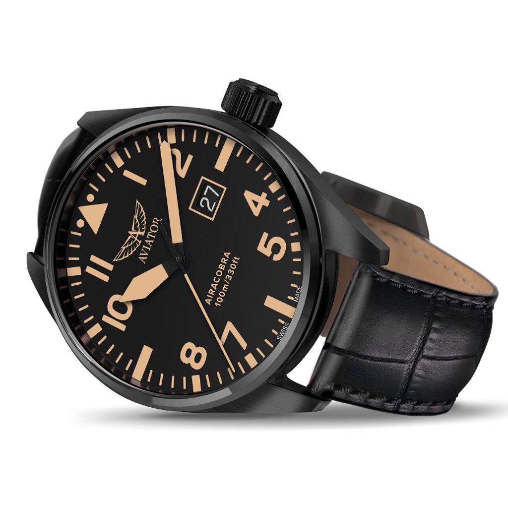Úspech pechotných operácií počas druhej svetovej vojny umožnili lietadlá Airacobra, ktoré podporovali jednotky z oblohy. Tak ako bolo toto bojové lietadlo dôležité pre pilotov a misiu, hodinky Aviator Airacobra ponúkajú rovnakú spoľahlivosť s vintage vzhľadom inšpirovaným týmto úctyhodným vojnovým hrdinom. Hodinky Aviator Airacobra sú vyrobené z prvotriednych materiálov a spájajú vojenskú precíznosť s klasickým vzhľadom.