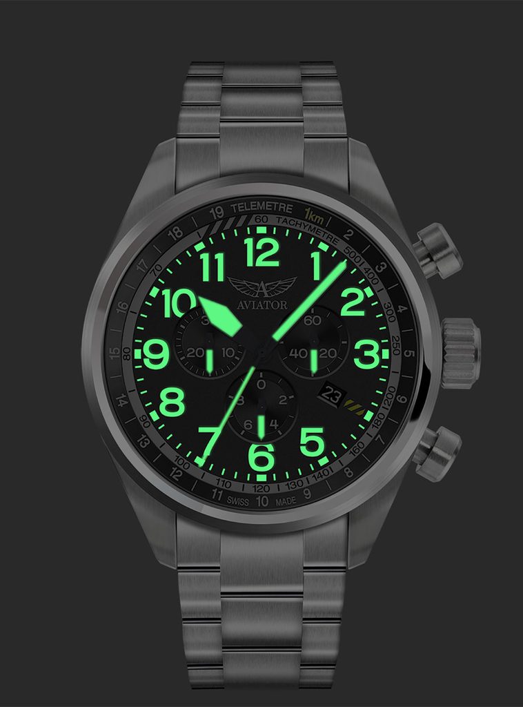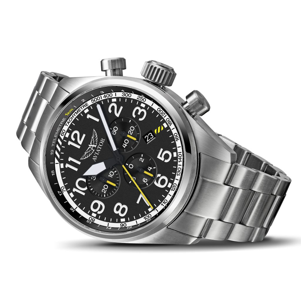 S priemerom puzdra 45 mm sa hodinky Aviator Airacobra P 45 Chrono V.2.25.0.169.5 hodia najmä priaznivcom väčších hodiniek. Vodotesnosť 10 ATM naznačuje, že tieto hodinky sú skvelým spoločníkom nielen vo vzduchu, ale aj pri plávaní vo vode.