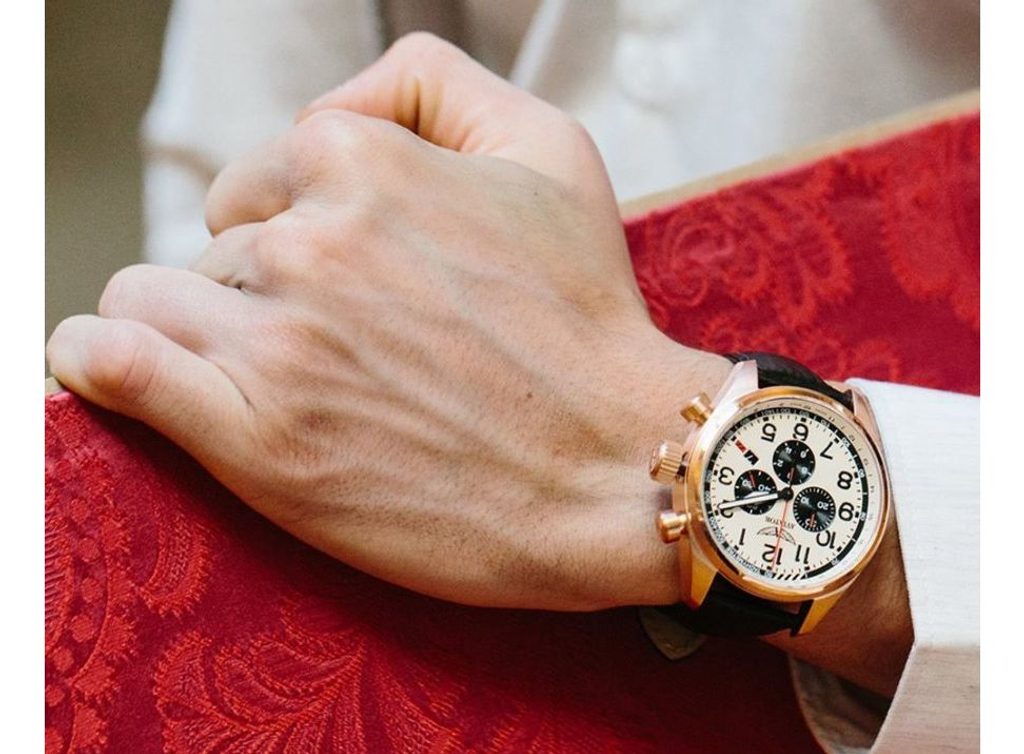Hodinky Aviator Airacobra odrážajú robustný, klasický vzhľad s rezaným a dobre proporcionálnym 45-milimetrovým puzdrom a ich dizajn vychádza priamo z histórie. Jeho nadrozmerná skrutkovacia korunka ponúka dobrý úchop, čo je obzvlášť výhodné v kombinácii s autentickými pilotnými rukavicami zo 40. rokov. Srdcom hodiniek je spoľahlivý švajčiarsky batériový strojček Ronda 5040 D, ktorý je vybavený praktickými funkciami, ako sú stopky, ukazovateľ dátumu, tachymeter a telemeter.