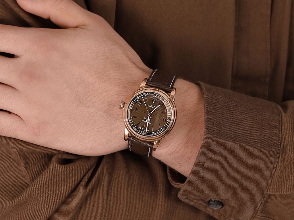 Puzdro hodiniek je vyrobené z nehrdzavejúcej ocele so zlatou PVD úpravou. Jeho zaoblené krivky sú ručne opracované jemnými hodinárskymi technikami a sú inšpirované ladnou sofistikovanosťou trupu lietadla Douglas. Jeho úžasné zrkadlovo leštené plochy sú zefektívnené ergonomicky uhladenými líniami. Keďže každé puzdro Aviator je výsledkom vysoko precíznej konštrukcie a ergonómie, získate dobre navrhnuté proporcie a rozmery puzdra v harmónii so všetkými ostatnými prvkami hodiniek.