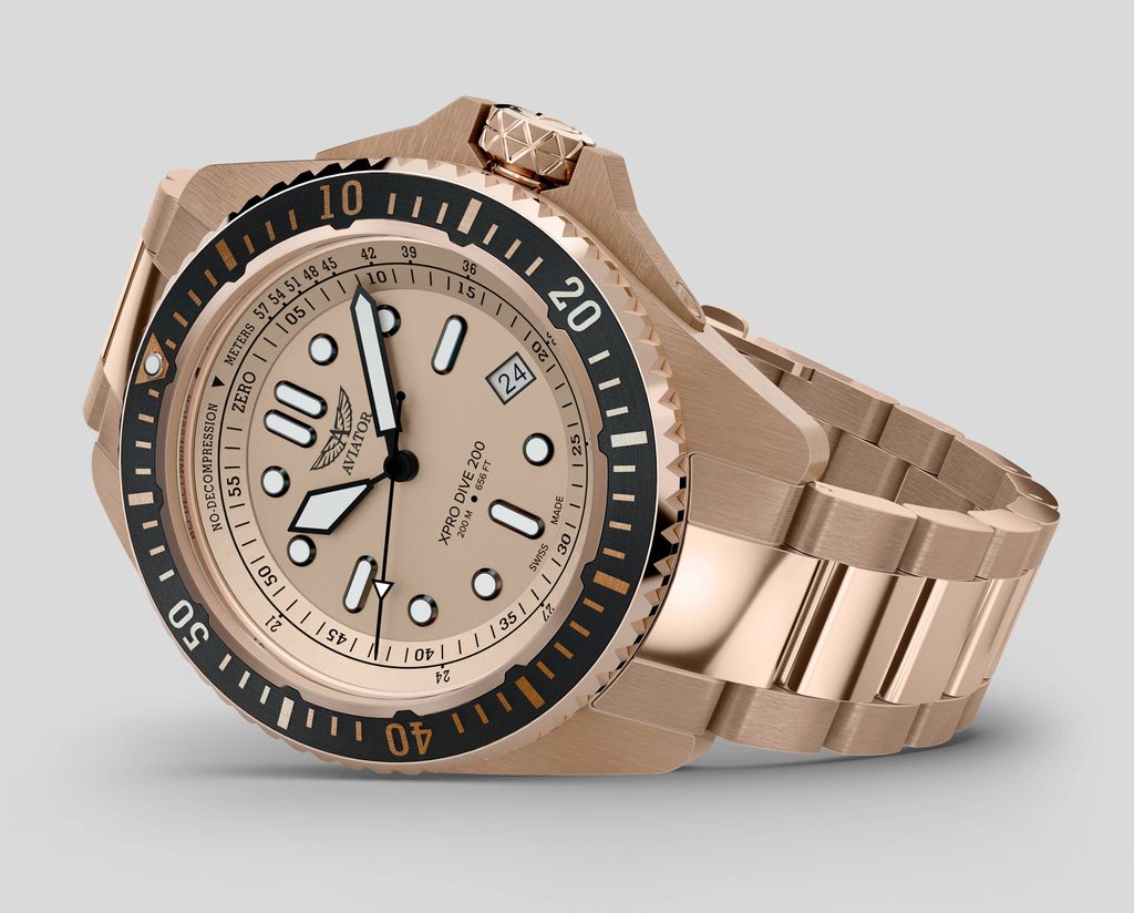HodinkyAVIATOR XPRO DIVE 200 sú hodinky do dvoch prostredí navrhnuté tak, aby vynikali v dvoch svetoch. Jeho duálna bezdekompresná stupnica, prispôsobená potápačskej príručke Navy SEALs, vás udrží v bezpečných časových limitoch bez ohľadu na to, či sa potápate na úrovni mora alebo skúmate vody vo veľkých výškach.