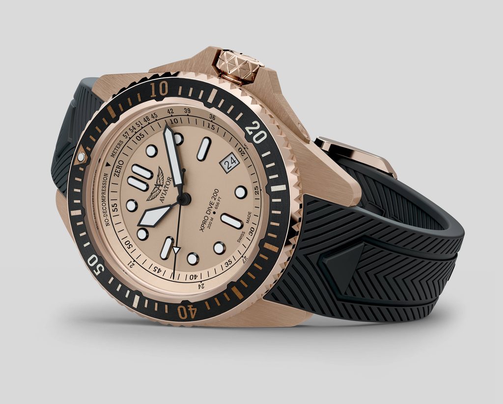 HodinkyAVIATOR XPRO DIVE 200 sú hodinky do dvoch prostredí navrhnuté tak, aby vynikali v dvoch svetoch. Jeho duálna bezdekompresná stupnica, prispôsobená potápačskej príručke Navy SEALs, vás udrží v bezpečných časových limitoch bez ohľadu na to, či sa potápate na úrovni mora alebo skúmate vody vo veľkých výškach.