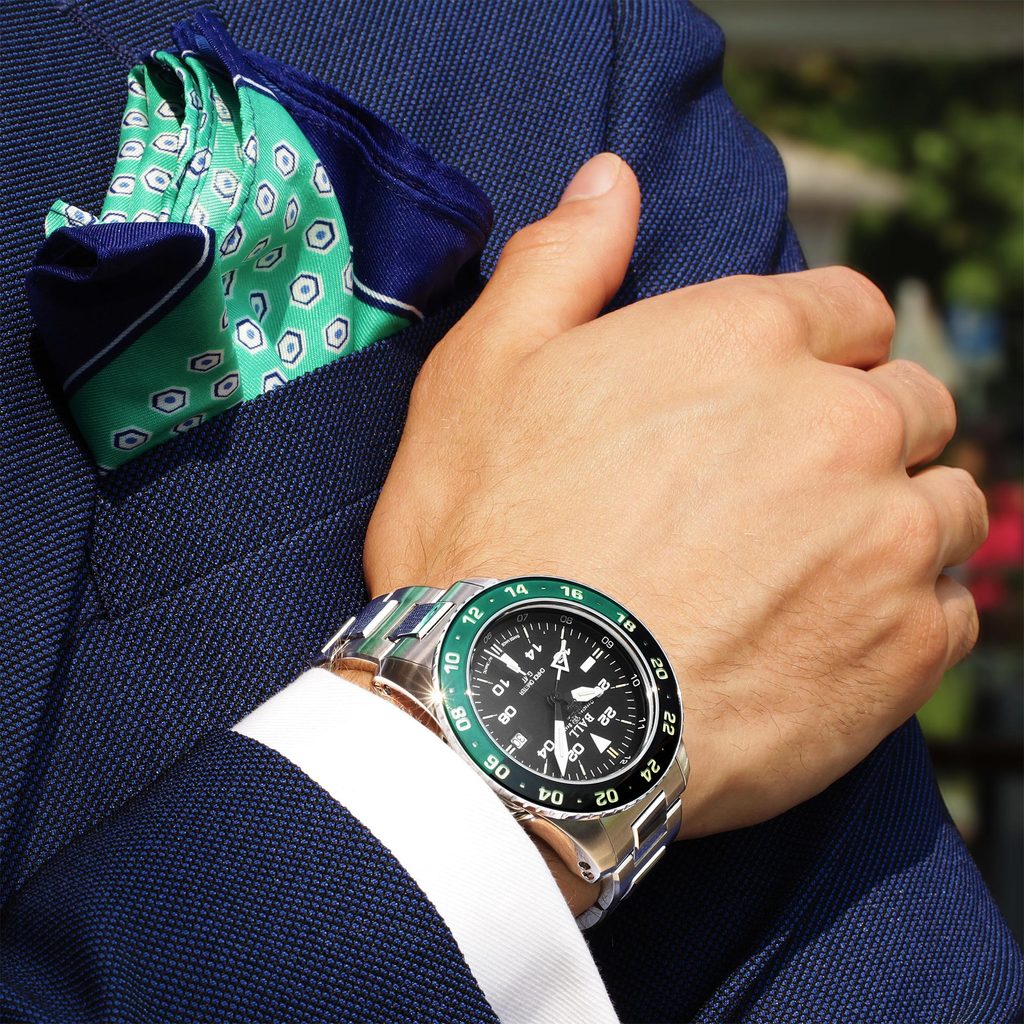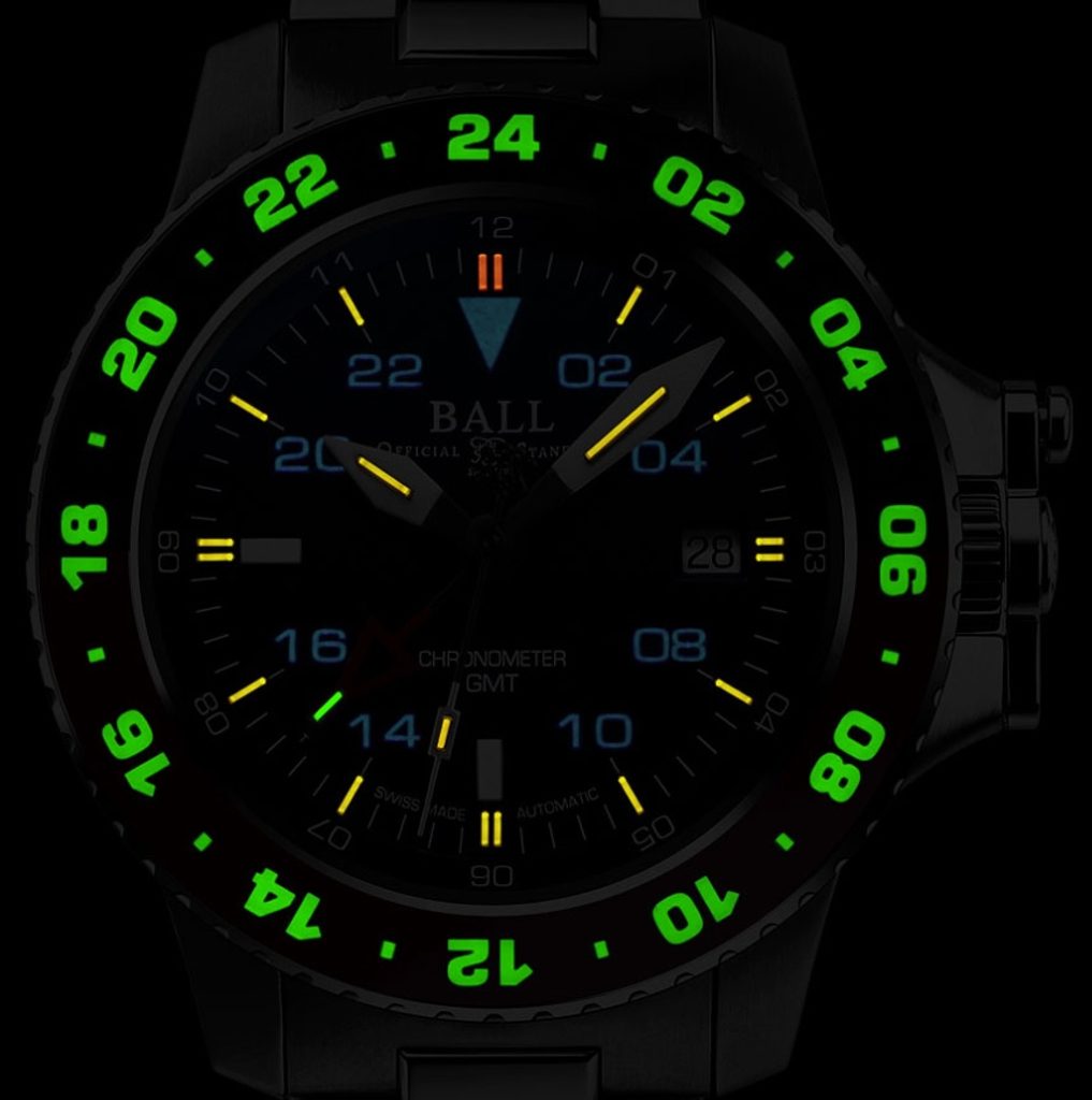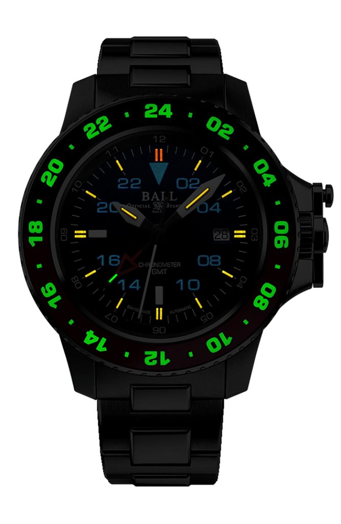 Hodinky Ball Engineer Hydrocarbon AeroGMT II (40 mm) COSC DG2118C-S11C-BK majú vynikajúce vlastnosti, ako je vysoká odolnosť, presnosť a vynikajúce spracovanie. Tieto hodinky majú klasický "potápačský" dizajn a sú skvelým nástrojom nielen do náročnejších podmienok, ale aj na každodenné nosenie. Tento model na prvý pohľad zaujme masívnou patentovanou ochranou korunky. Funkcia GMT, teda ukazovateľ druhého časového pásma, bude užitočná najmä pre cestovateľov.