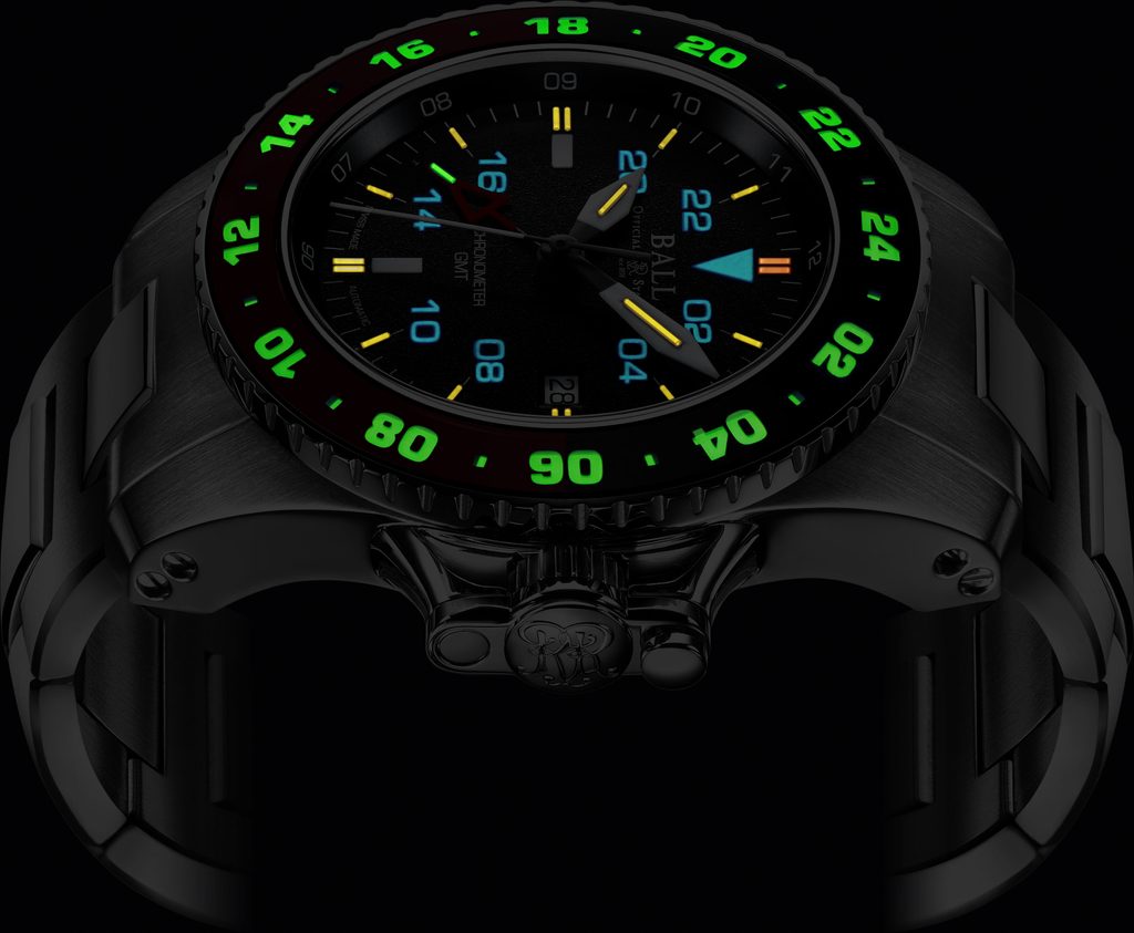 Hodinky Ball Engineer Hydrocarbon AeroGMT II (42 mm) COSC DG2018C-S11C-BK majú vynikajúce vlastnosti, ako je vysoká odolnosť, presnosť a vynikajúce spracovanie. Tieto hodinky majú klasický "potápačský" dizajn a sú skvelým nástrojom nielen do náročnejších podmienok, ale aj na každodenné nosenie. Tento model na prvý pohľad zaujme masívnou patentovanou ochranou korunky. Funkcia GMT, teda ukazovateľ druhého časového pásma, bude užitočná najmä pre cestovateľov.