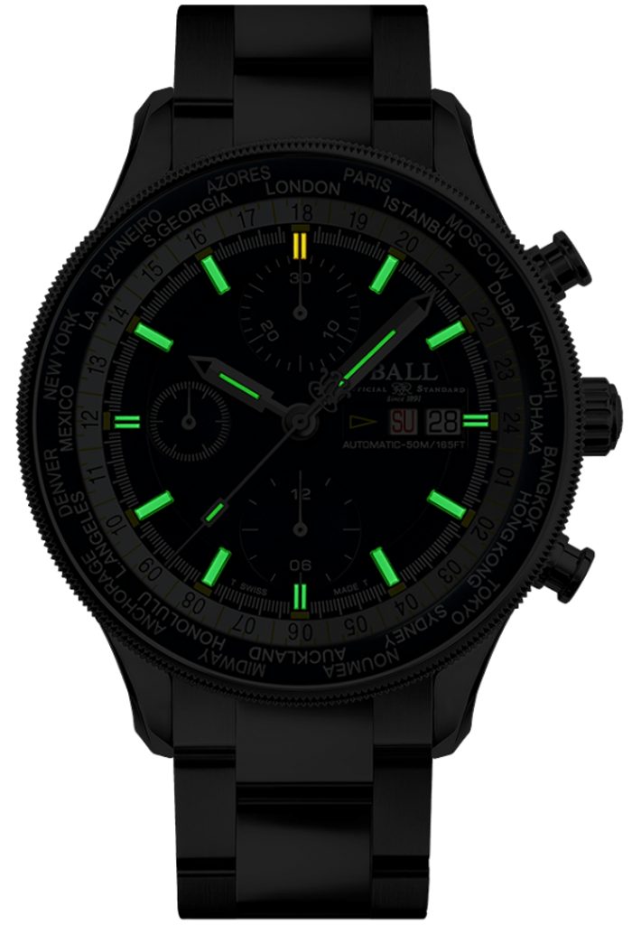 Hodinky Ball Engineer II Navigator World Time Chronograph CM3388D-S-BE prinášajú vynikajúce vlastnosti, ako je vysoká odolnosť a skvelé spracovanie. Tieto hodinky majú atraktívny športový dizajn a sú skvelým nástrojom najmä na každodenné nosenie. Funkcia Worldtimer, teda zobrazenie druhého časového pásma, poslúži najmä cestovateľom.