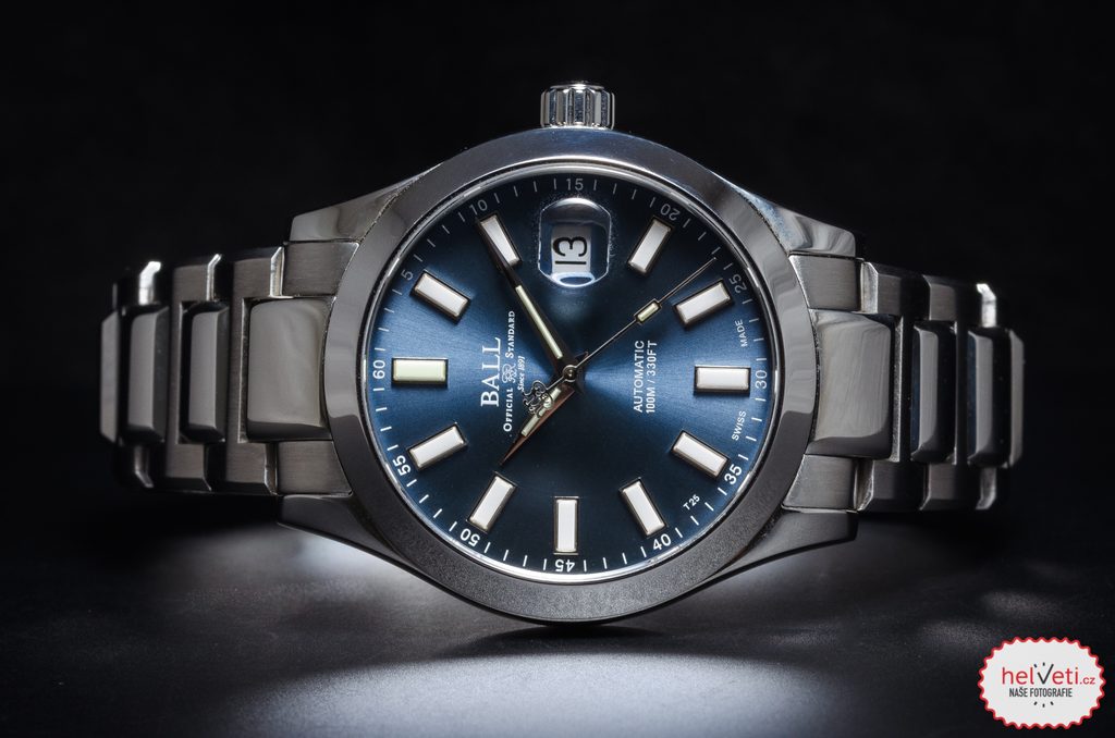Puzdro hodiniek Ball NM9026C-S6J-BE vrátane náramku je vyrobené z ušľachtilej ocele 904L, čo si vyžaduje špeciálne technologické postupy pri spracovaní a zaručuje zvýšenú odolnosť voči korózii a kyselinám. Vnútri tohto puzdra pracuje švajčiarsky mechanický automatický strojček Ball RR1103 (základom je ETA 2824, alebo Sellita SW200), ktorý pracuje na frekvencii 28800 polokmitov za hodinu. Na tradičnej pozícii 3 potom nájdeme ukazovateľ dátumu, zvýraznený lupou (tzv. kyklopom).
