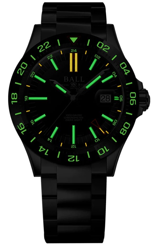 Hodinky Ball Engineer III Outlier (40 mm) Manufacture COSC DG9002B-S1C-BE majú vynikajúce vlastnosti, ako je vysoká odolnosť a skvelé spracovanie. Vďaka svojej všestrannej konštrukcii je skvelým nástrojom nielen v drsnejších podmienkach, ale aj pri každodennom nosení. Funkcia GMT, t. j. ukazovateľ druhého časového pásma, poslúži najmä cestujúcim. Tento model sa vyrába v limitovanej edícii 1000 kusov pre celý svet.