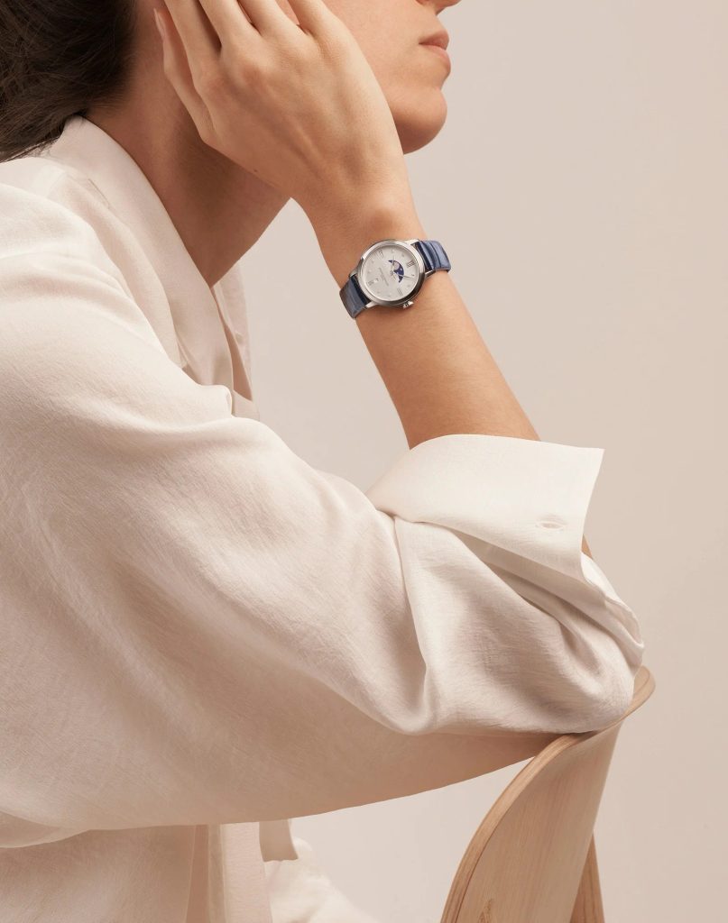 Baume & Mercier Classima sú klasické hodinky s okrúhlym puzdrom a dokonale vyváženými proporciami, ktoré je radosť nosiť. V ich dizajne sa spája nádych modernosti s pestrou paletou materiálov. Hodinky Baume & Mercier Classima 10329 s ukazovateľom fázy mesiaca sú nestarnúcou klasikou, nadčasovým modelom, ktorý pôsobí jednoduchým, ale luxusným dojmom.