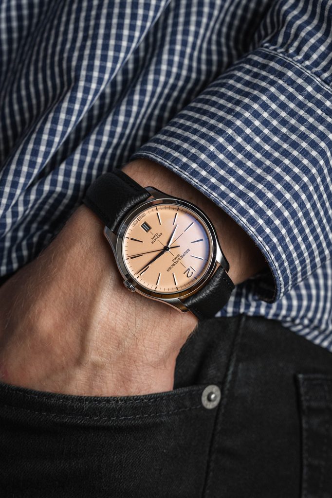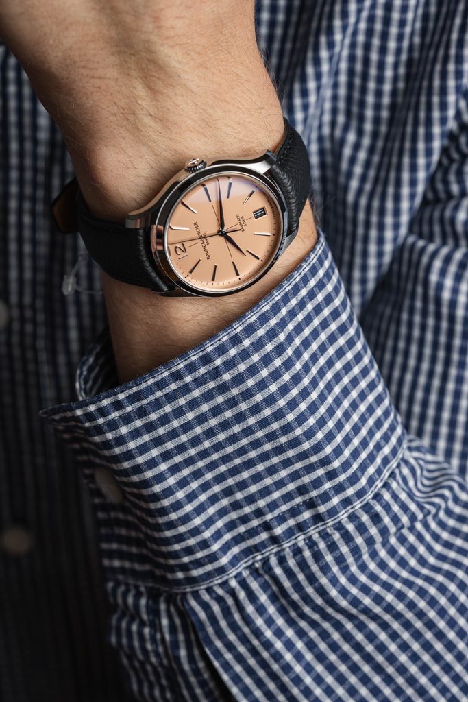 Limitovaná edícia prichádza s prepracovaným 39 mm puzdrom a odtieňom ciferníka s vintage nádychom, ktorý evokuje čaro jemnosti a tepla. Lososová farba bola typická pre hodinky v 30. a 40. rokoch minulého storočia. V prípade ciferníka si zaslúži vyzdvihnúť starostlivá práca s farbami v snahe nájsť ideálny tón medzi ružovou a broskyňovou a dokonalú intenzitu medzi svetlosťou a hĺbkou.