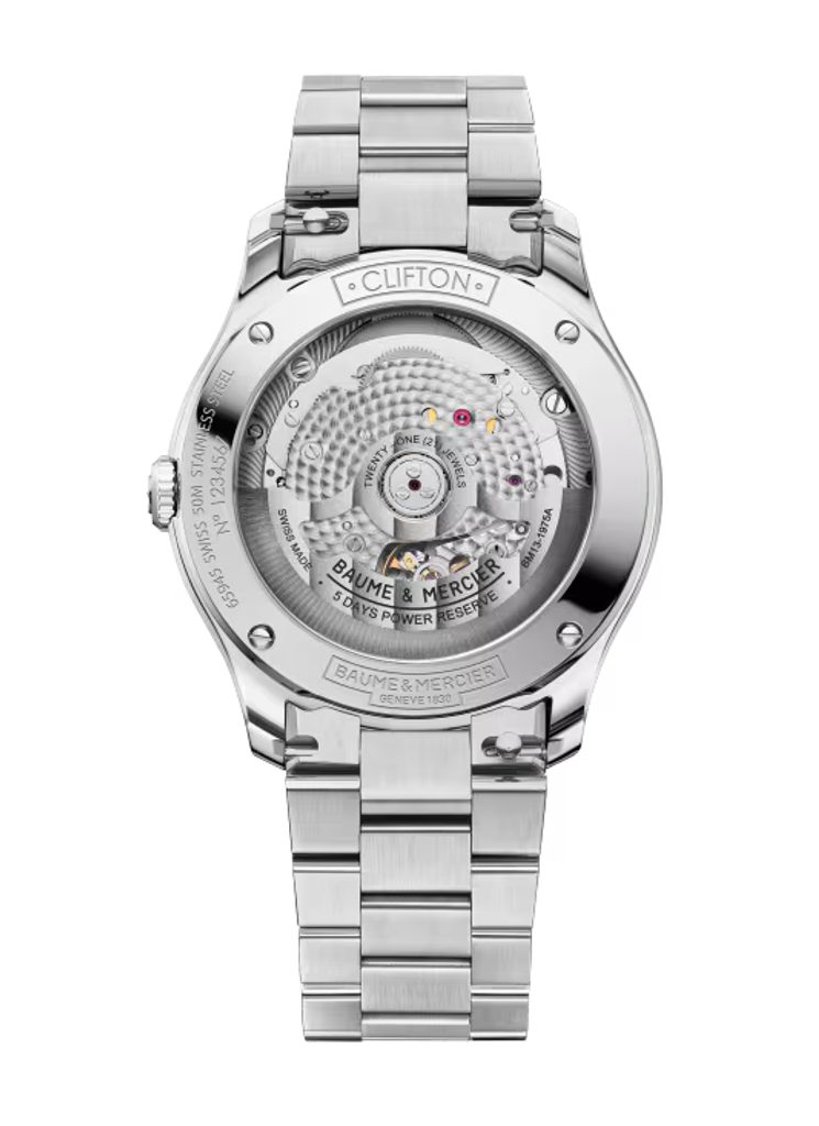 Baume & Mercier Clifton 10793 majú prepracované puzdro, širšiu dátumovku na 6. hodine a integrovanú korunku pre ucelenejší vzhľad, pričom si zachovávajú charakteristický gradientný ciferník a strojček Baumatic, ktorý je pre túto sériu charakteristický. Nový model B&M Clifton vzdáva hold dedičstvu značky v oblasti spoločenských hodiniek, ktorého korene siahajú až do 50. rokov minulého storočia.