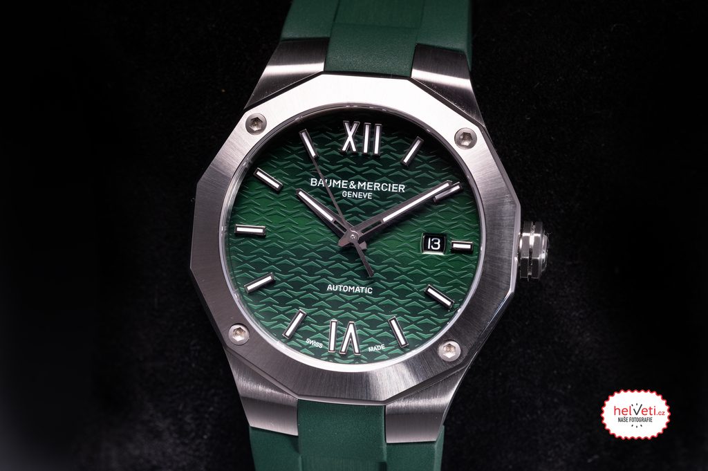 Hodinky Baume & Mercier Riviera M0A10618 majú zelený ciferník s typickou štruktúrou, ktorý dopĺňajú kontrastné strieborné ručičky a reliéfne indexy na pozíciách hodín. Hodinky poháňa mechanický samonáťahový strojček Sellita SW200 s rezervou chodu približne 38 hodín. Strojček s frekvenciou 28 800 polofrekvencií za hodinu ponúka možnosť naťahovania korunkou, funkciu stopiek pri nastavovaní času (hacking) a dátum na pozícii 3 hodín.