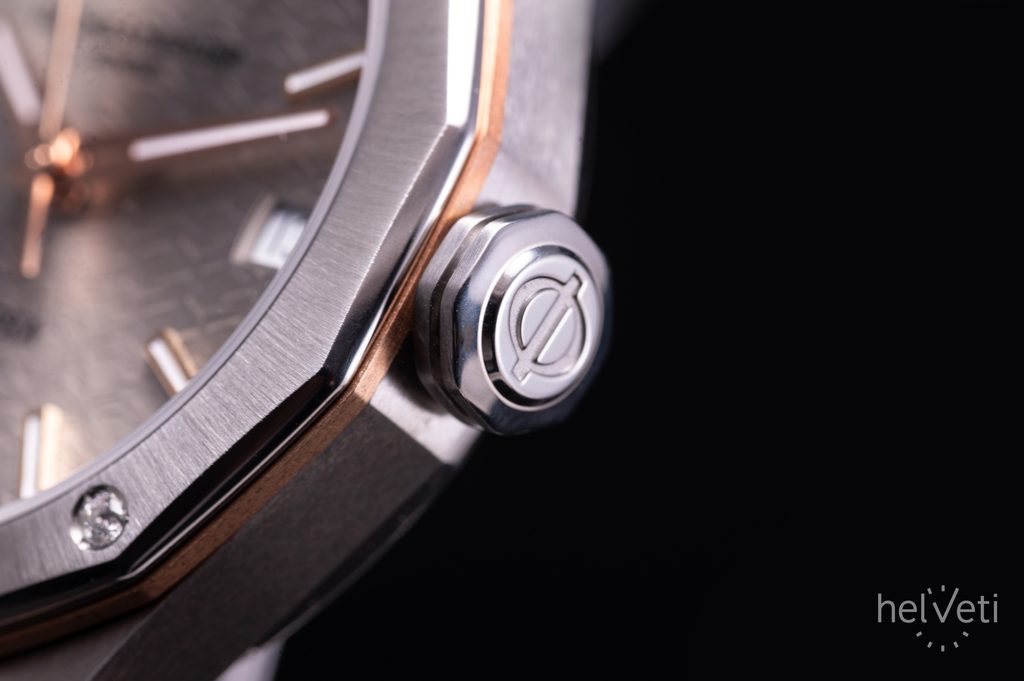 Eleganciu týchto hodiniek umocňujú 4 diamanty vsadené do lunety so saténovým povrchom. Oceľové puzdro dopĺňa trojradový náramok ukončený motýľovým zapínaním. Integrovaný náramok podporuje športový dojem z hodiniek a je vybavený rýchloupínacím systémom, ktorý uľahčuje výmenu remienka bez použitia náradia. Luminiscencia Super-LumiNova na ručičkách a indexoch zabezpečuje lepšiu čitateľnosť za zhoršených svetelných podmienok. Vodotesnosť tohto modelu je 50 m. Priemer puzdra je ideálnych 33 mm pre dámske zápästia.