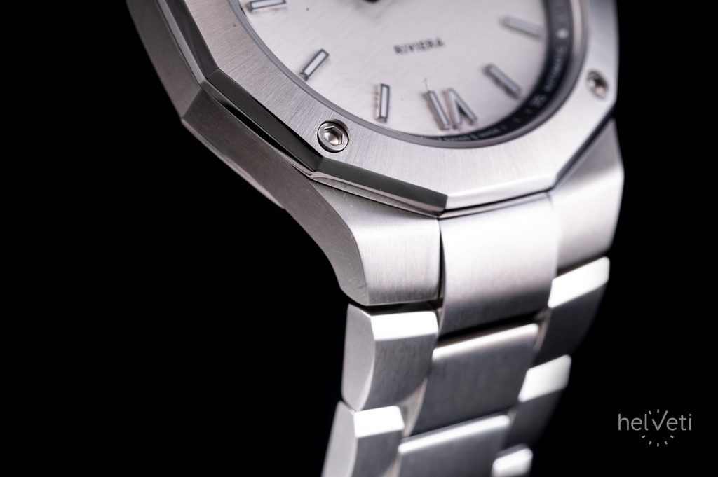 Modely z kolekcie Riviera sú okamžite rozpoznateľné vďaka 12-strannej lunete so štyrmi skrutkami, ktorá je odkazom na dizajn športových oceľových modelov Riviera, ktoré značka prvýkrát predstavila v roku 1973. Vzhľad hodiniek vyjadruje slobodu, ležérnu eleganciu a je stelesnením jemnej hodinárskej práce. Oceníte najmä všestrannosť hodiniek - vďaka súboru funkcií sú ideálne na použitie pri športe, vo vode aj na každodenné používanie.