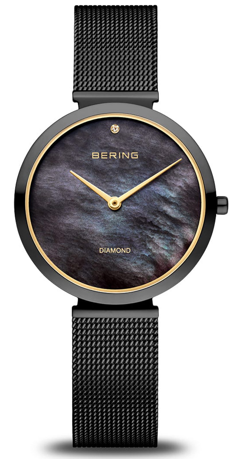 Dámske oceľové hodinky Bering Ultra Slim 18132-132 sú elegantné hodinky s čistým dizajnom. Čiernemu perleťovému ciferníku dominuje trblietavý diamant na 12. hodine.