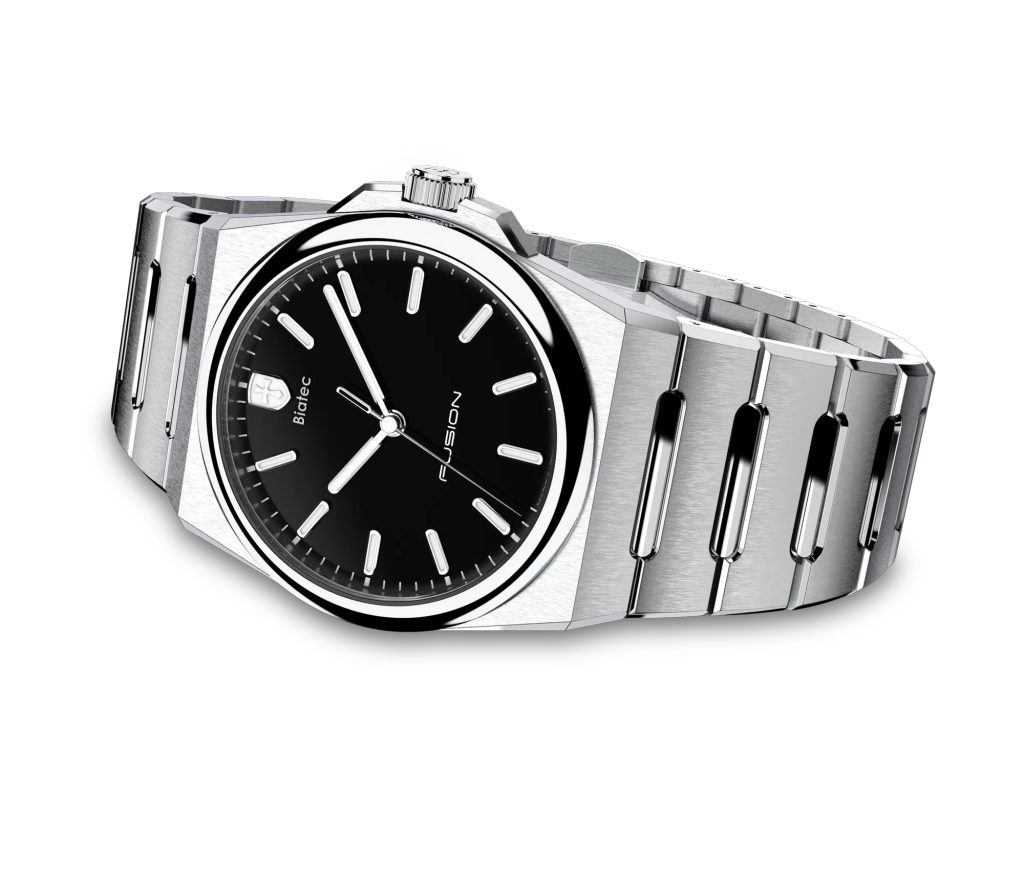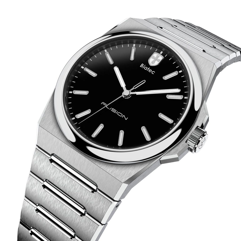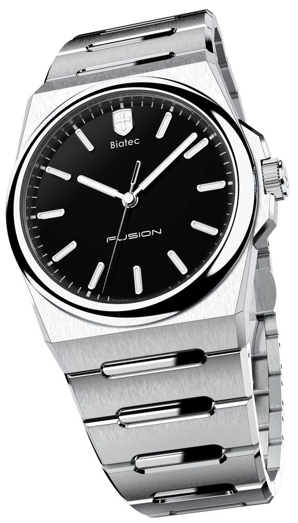 Model Biatec Fusion 01 sa môže pochváliť 39 mm puzdrom vyrobeným z nehrdzavejúcej ocele 316L s kombináciou leštenej a brúsenej povrchovej úpravy puzdra a náramku. Vďaka technológii NanTec puzdro aj náramok modelu Biatec Fusion 01 bez problémov odolávajú náročnému zaobchádzaniu. Táto technológia zaručuje, že si hodinky zachovajú svoj lesk a krásu aj po rokoch nosenia.
