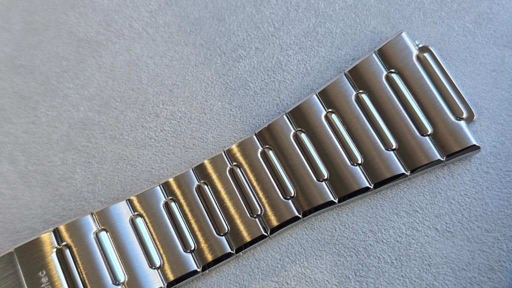 Náramok so šírkou 20 mm je vyrobený z nehrdzavejúcej ocele s povrchovou úpravou NanTec a je vybavený systémom rýchleho uvoľnenia a motýlikovou sponou s mikroreguláciou, ktorá umožňuje pohodlné nastavenie celkovej dĺžky.