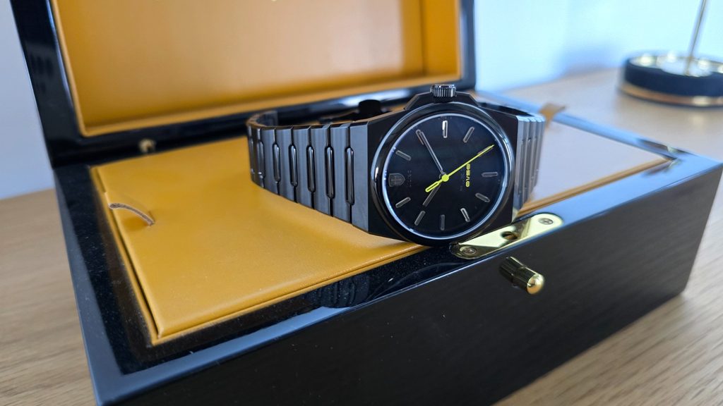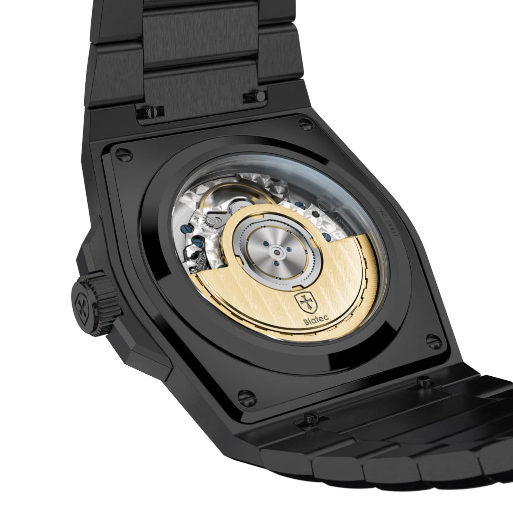 Model Biatec Fusion 03 sa môže pochváliť 39 mm puzdrom z nehrdzavejúcej ocele 316L s kombináciou leštenej a brúsenej povrchovej úpravy DLC v čiernej farbe na puzdre a náramku.