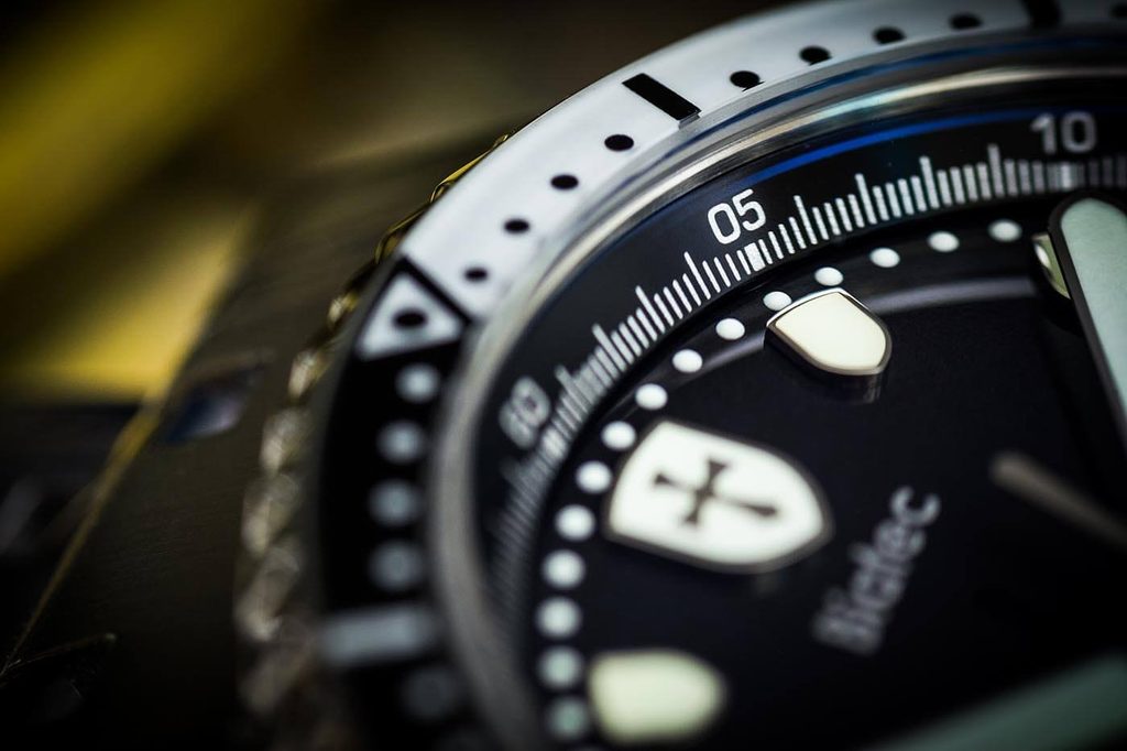 Samozrejmosťou je jednosmerne rotujúca zafírová luneta s luminiscenciou Super-LumiNova C1, skrutkovacia korunka s logom Biatec a zadný kryt. Priemer puzdra je príjemných 40 mm, dĺžka (od ucha k uchu) je 43,5 mm, takže hodinky dobre sedia na väčšine pánskych zápästí.