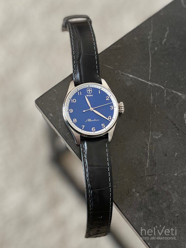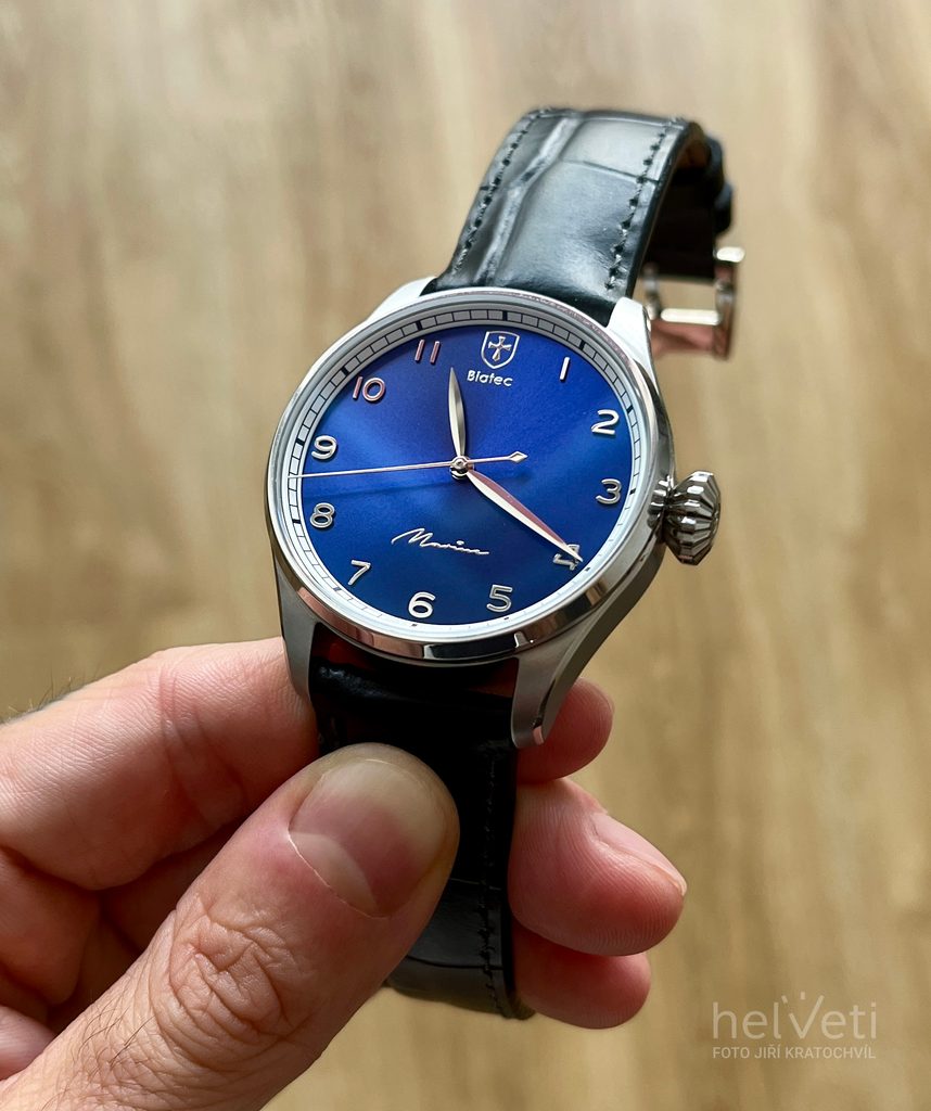 Dokonale prehľadný číselník modrej farby s efektom slnečného brusu s leštenými ručičkami je chránený zafírovým sklíčkom, ktoré je maximálne odolné voči poškriabaniu. Čitateľnosť za ostrého svetla potom zaisťuje obojstranná antireflexná vrstva. Vodeodolnosť týchto hodiniek je 100 m (10 ATM), zvládnu teda aj kontakt s vodou, ako je sprcha, dážď i plávanie. Hodinky na ruke drží čierny kožený remienok z teľaciny s čiernym prešívaním.
