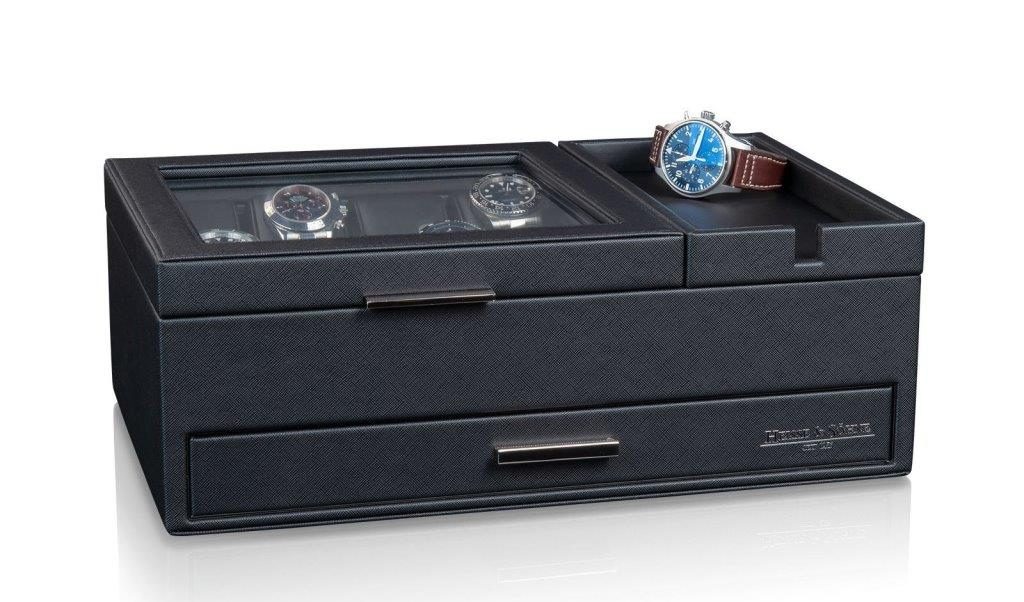 Kancelárska skrinka na hodinky a šperky Heisse & Söhne Desk Buttler No.1 70019-189.142 je mimoriadne elegantný a praktický organizér na uloženie šperkov a hodiniek. Preč sú časy, keď ste museli používať samostatné poličky na hodinky, peňaženku, mobilný telefón a šperky. Z vonkajšej strany je schránka Desk Buttler potiahnutá kvalitnou, pevnou imitáciou kože so vzhľadom Saffiano.